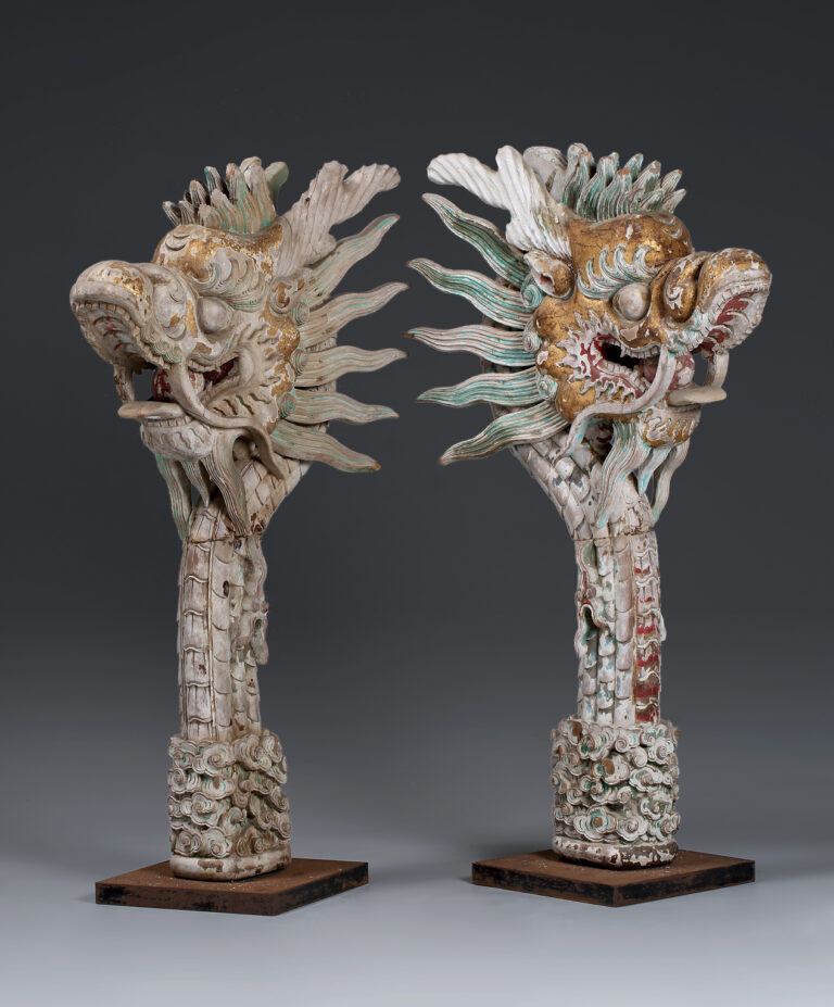 木雕彩繪龍首一對