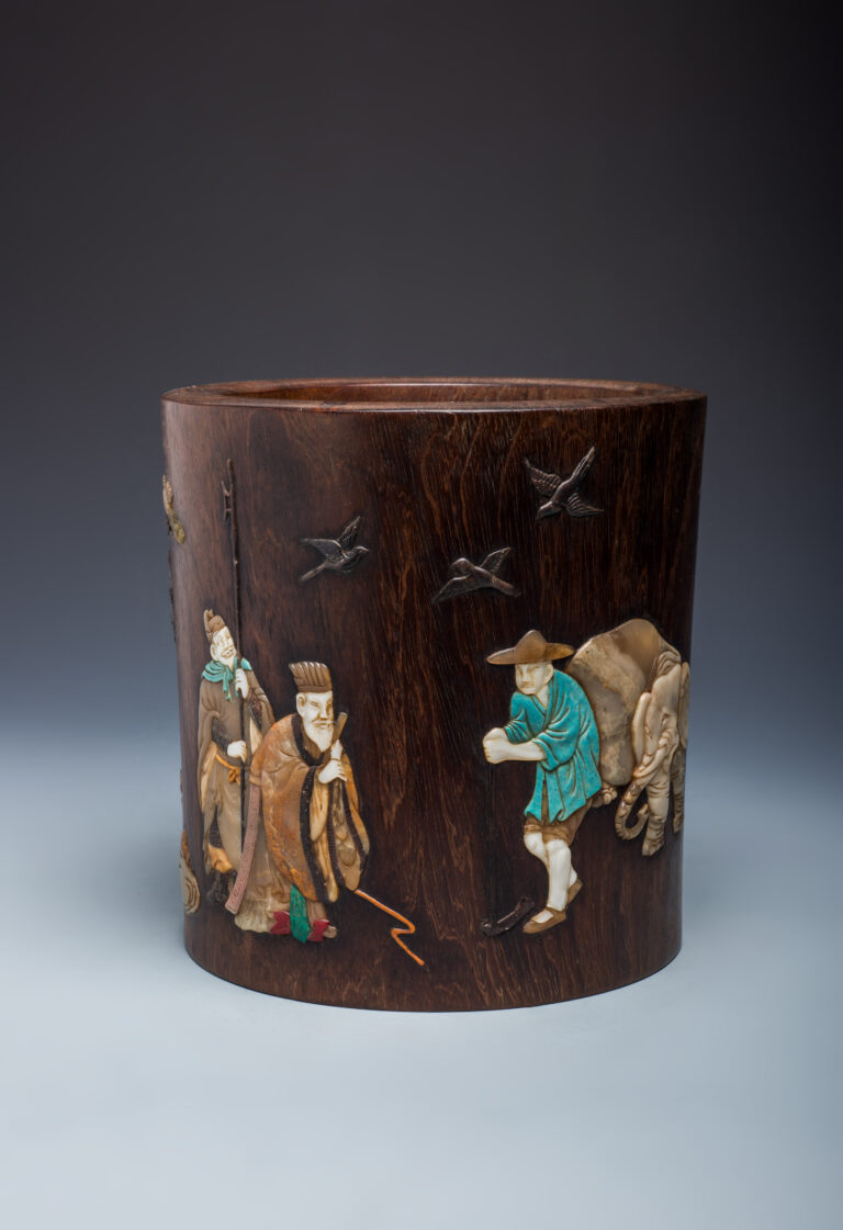 「孝感天地」玉雕彩繪嵌木筒