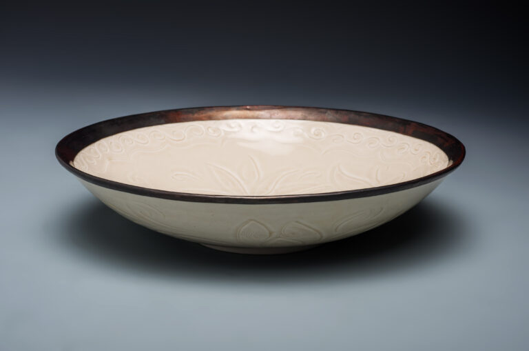 白瓷銅口印花蓮紋碗