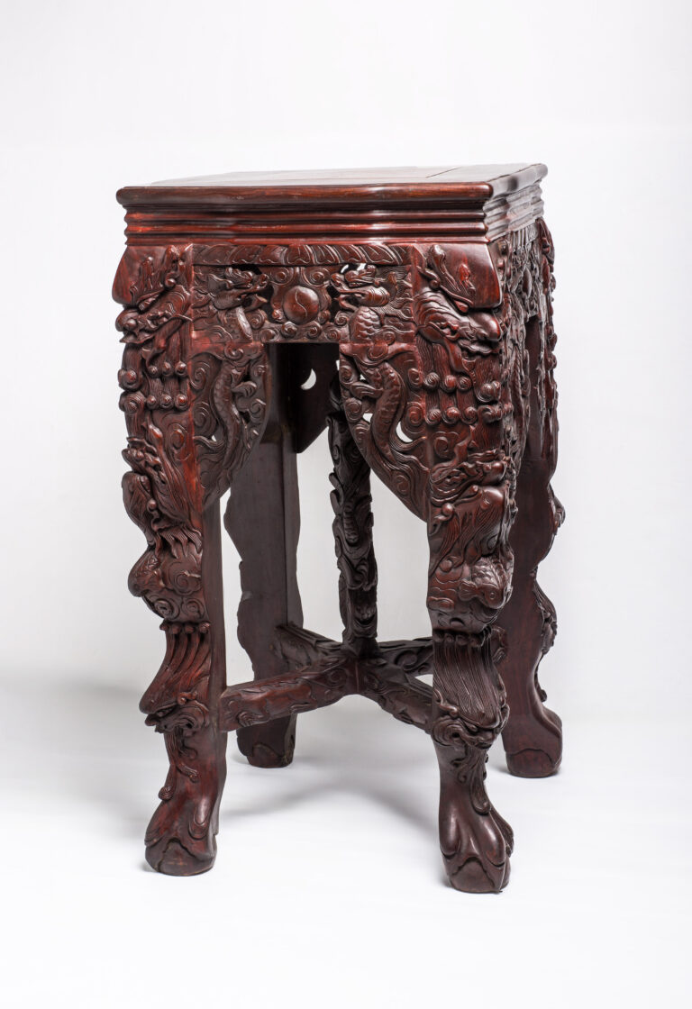 木雕螭龍紋花几
