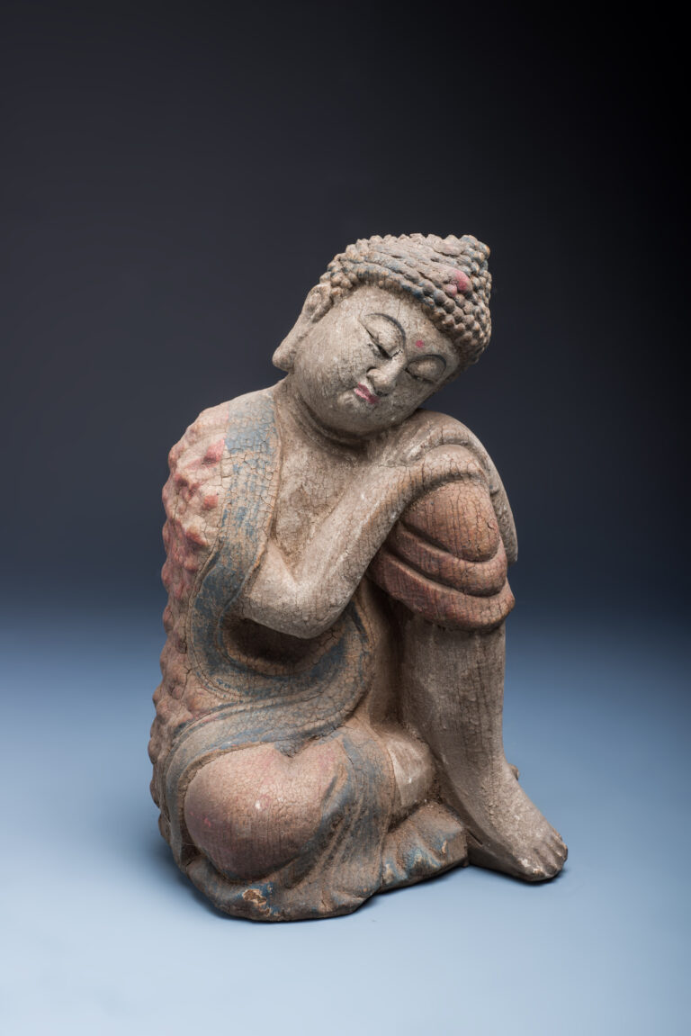 木雕抱膝坐佛像
