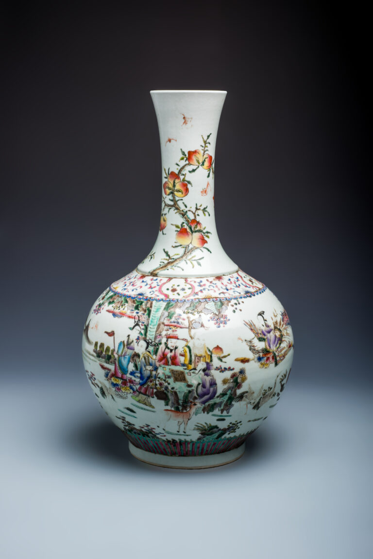 清康熙 五彩群仙賀壽天球瓶