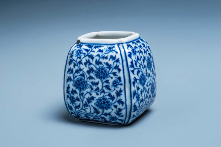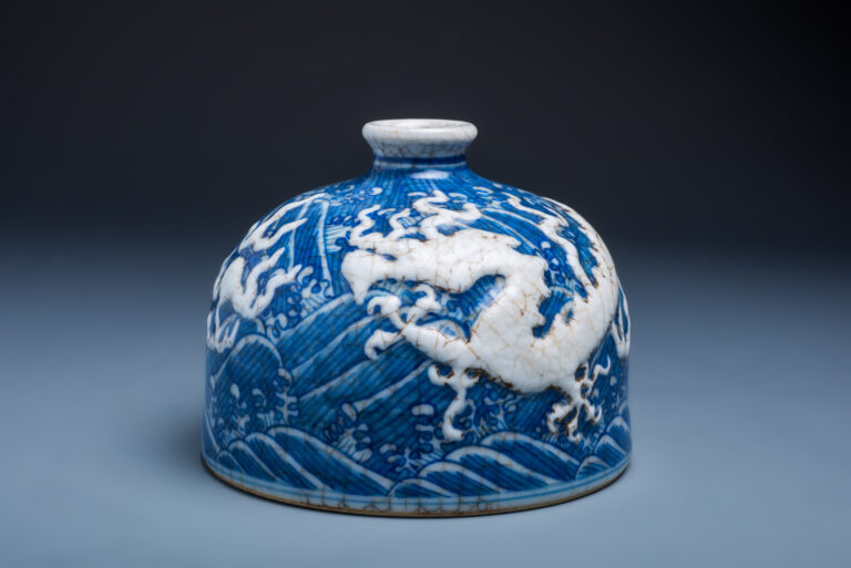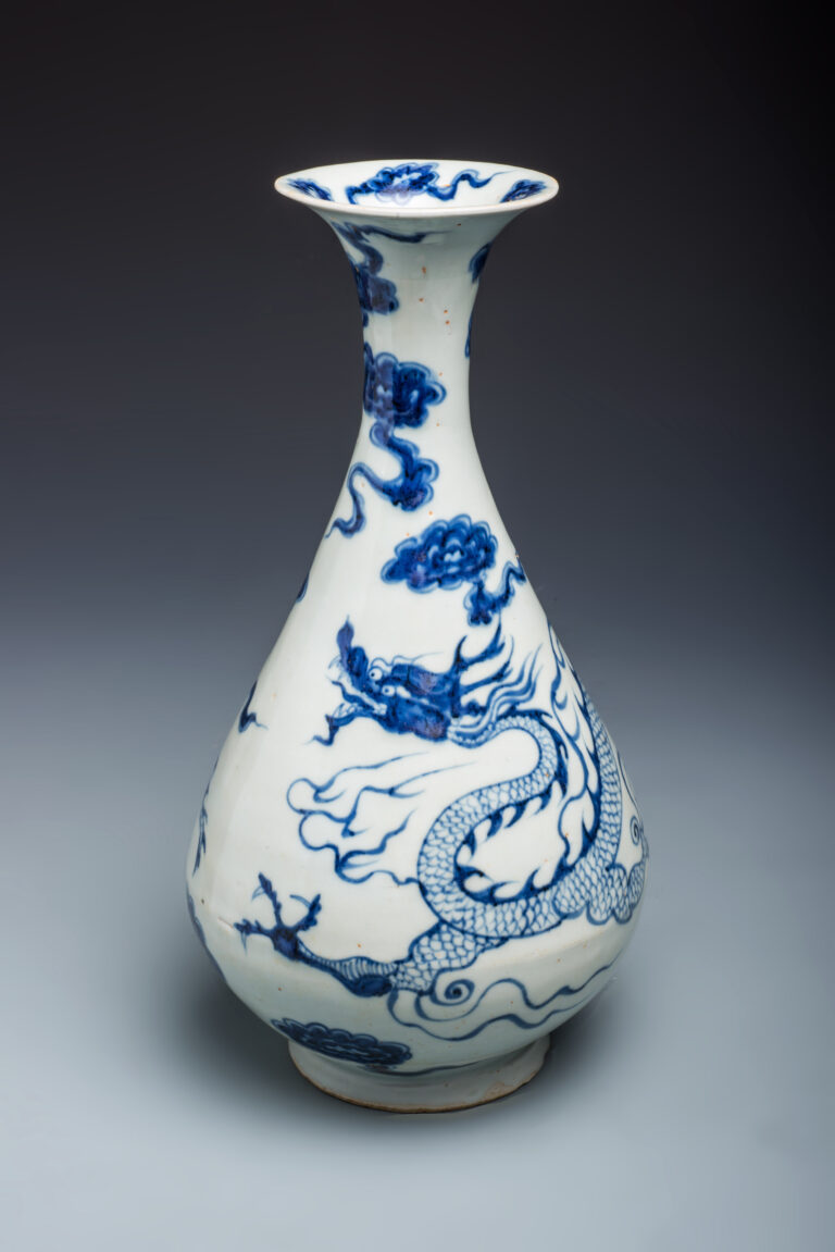 清乾隆 青花纏枝蓮紋鋪首耳長頸蓮口瓶