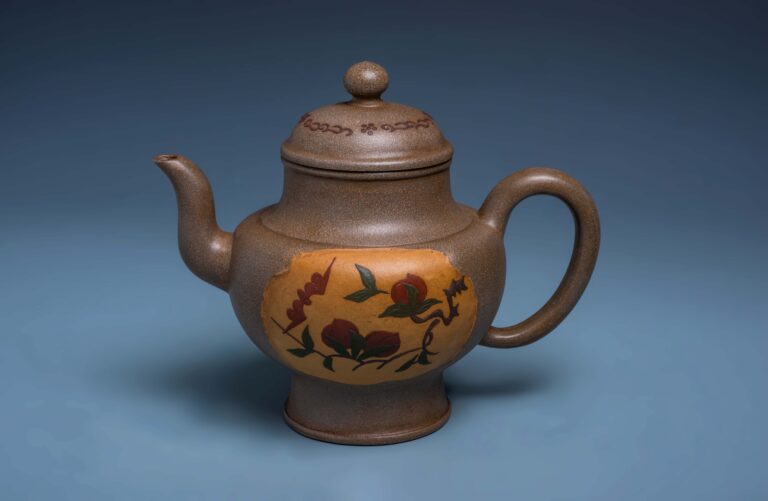 王寅春(1897-1977)紫沙泥繪桃蝠紋宮燈壺