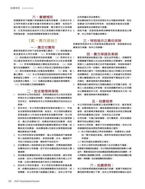 3. 本公司所收取安全管理費用,僅止於因竊盜或不當毀損 四「賣方保證及承諾」條款所為保證及承諾內容有 切所需費用。本公司認為適當時亦可將該拍賣品再為公