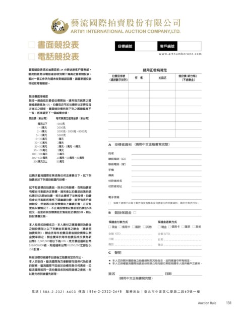 拍賣規則 Auction Rule 130 Art#1 International Auction Auction Rule 131