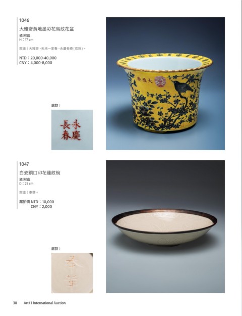 大雅齋黃地墨彩花鳥紋花盆 清康熙 五彩群仙賀壽天球瓶
