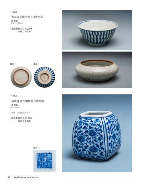 青花滿文壽字碗 / 白瓷水洗 清乾隆 青花纏枝蓮紋鋪首耳長頸