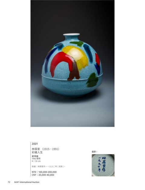 款識|林葆家作。一九九○年 ( 底款 )。                                                                                           證書|陶藝後援會鑑定證書。