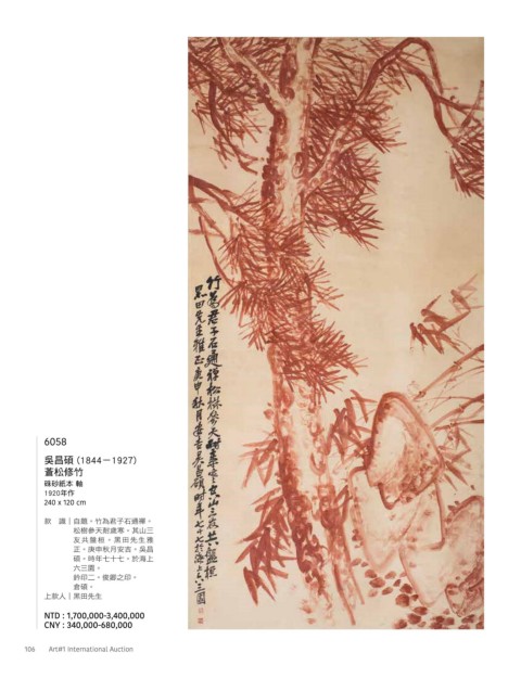 硃砂紙本 軸 吳昌碩 (1844-1927)