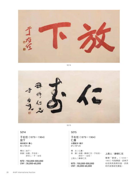 CNY : 30,000-60,000 NTD : 150,000-300,000 右任與其長期交誼,亦具 NTD : 300,000-600,000 往的僧侶友人。署贈開