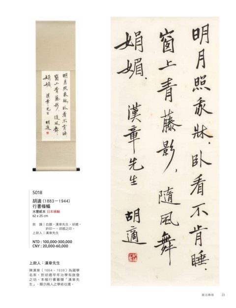 譯。本作具特殊歷史語境與文化交 之功。本幅行書署贈「漢章先