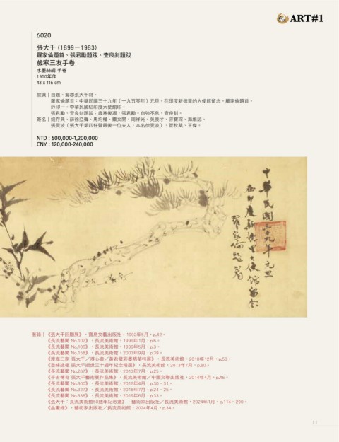 《張大千:長流美術館50週年紀念選》,藝術家出版社/長流美術館,2024年1月,p.114、290。