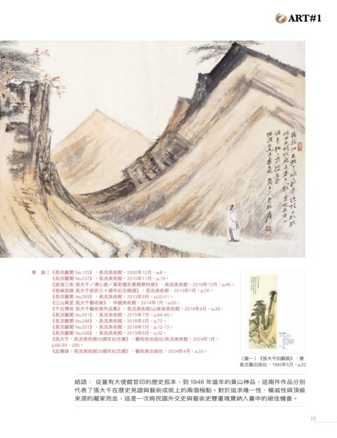 系統性收藏大千黃山精品的歷史事實。兩作如雙星 人數數寫之在黃山諸奇松中最擅名 《長流藝聞 No.338》,長流美術館,2019年6月,p.32。