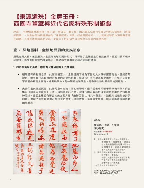 1. 硃砂銀箋世紀孤本:康有為《硃砂經句》六曲屏風