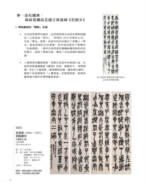 廳堂展示創作的博物館級鉅跡。 清 吳昌碩 篆書為厚夫臨石鼓文