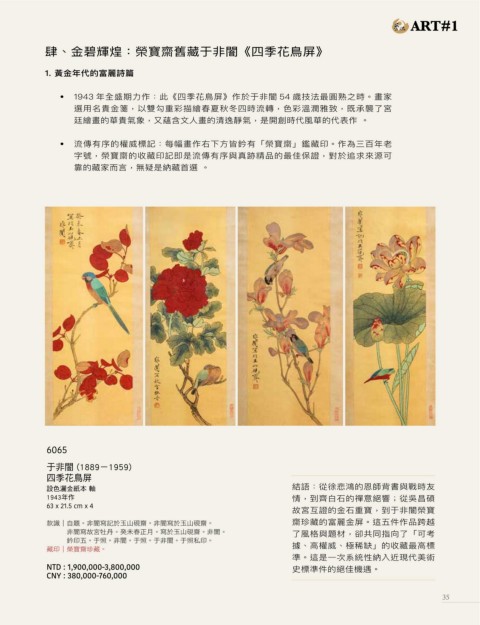 參、金石鐵案: 肆、金碧輝煌:榮寶齋舊藏于非闇《四季花鳥屏》