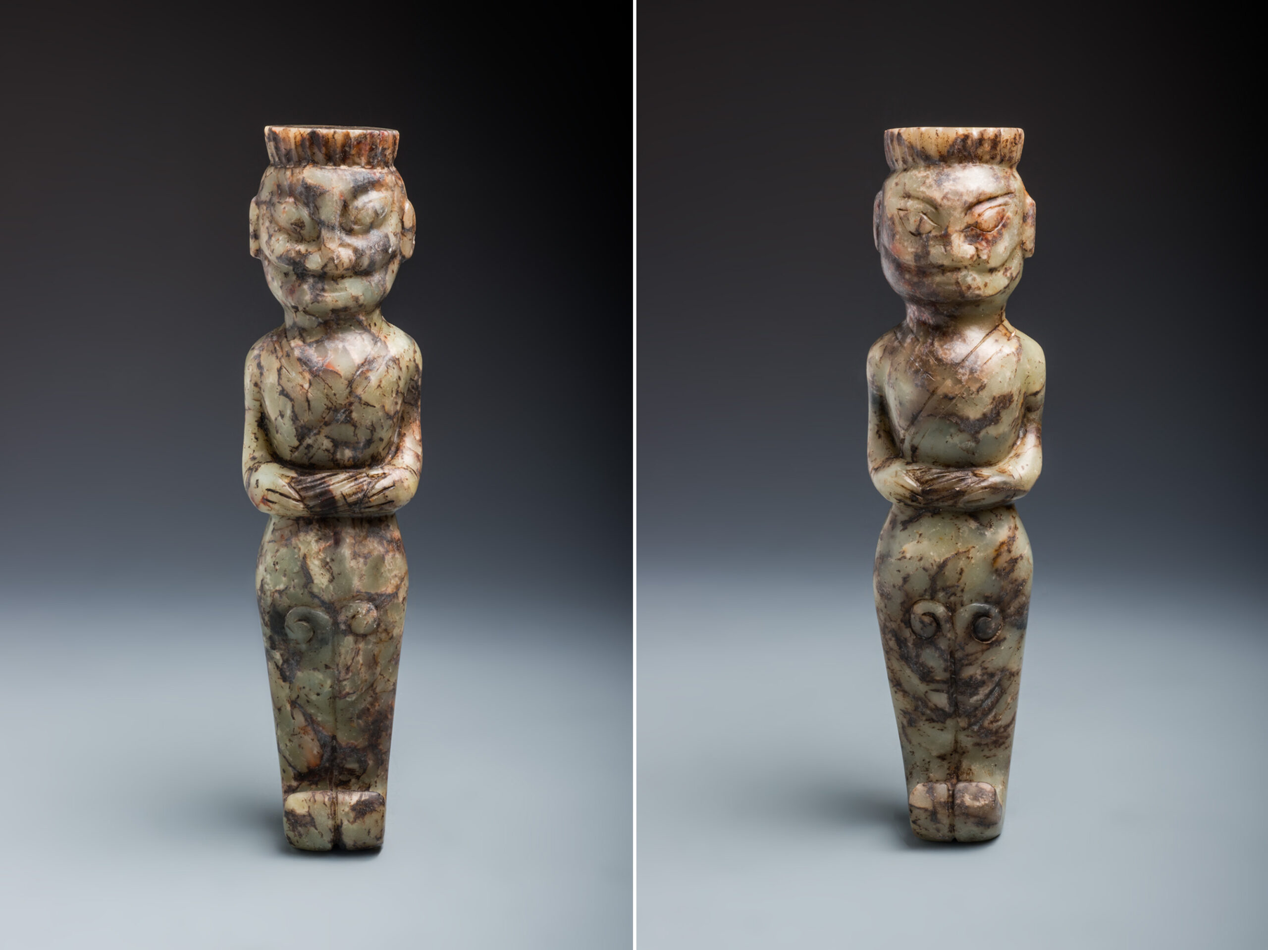 L1005 玉圓雕立人像一對玉 H:27/29cm