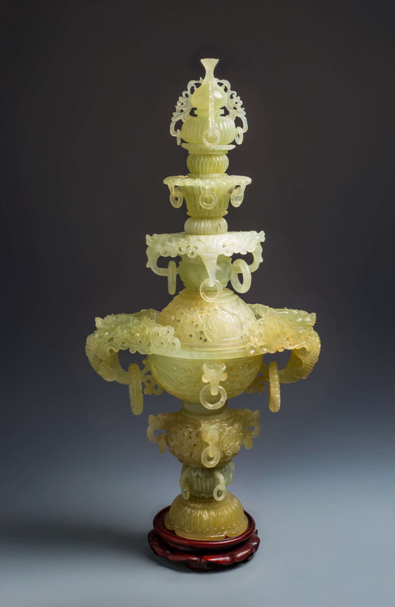 L1010 玉雕螭龍紋塔式銜環香薰爐玉 H:61cm 附盒、附座