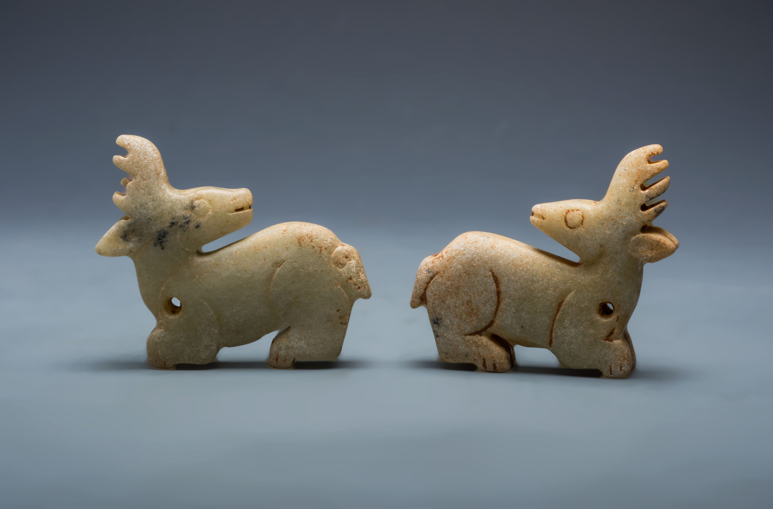 L1017 玉雕回頭鹿一對玉 L:4cmx2 附盒