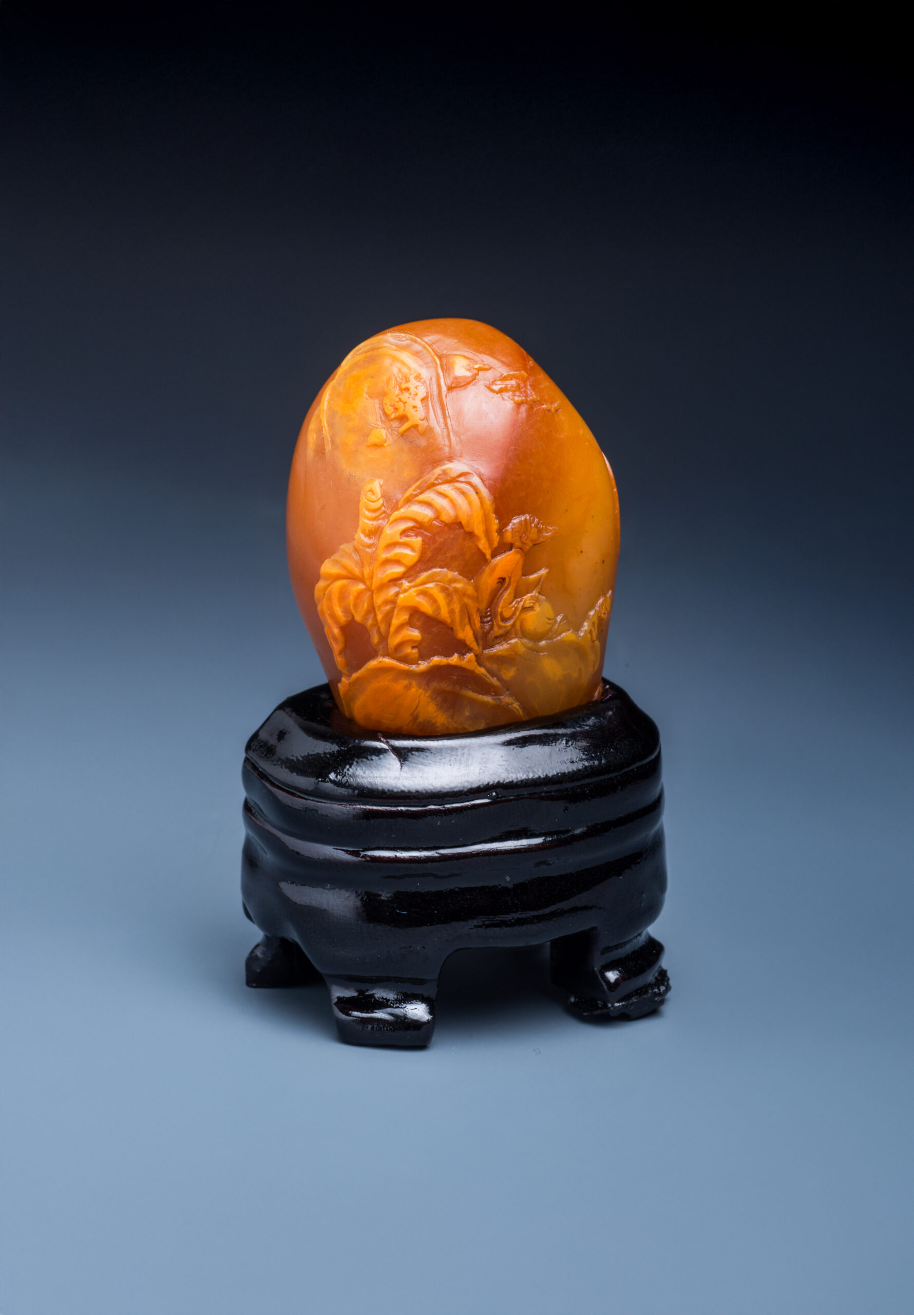 L1026 田黃石浮雕人物故事擺件石 H:4cm 附座;附盒款識:讀。證書:台大國際寶石鑑定所寶石鑑定書。