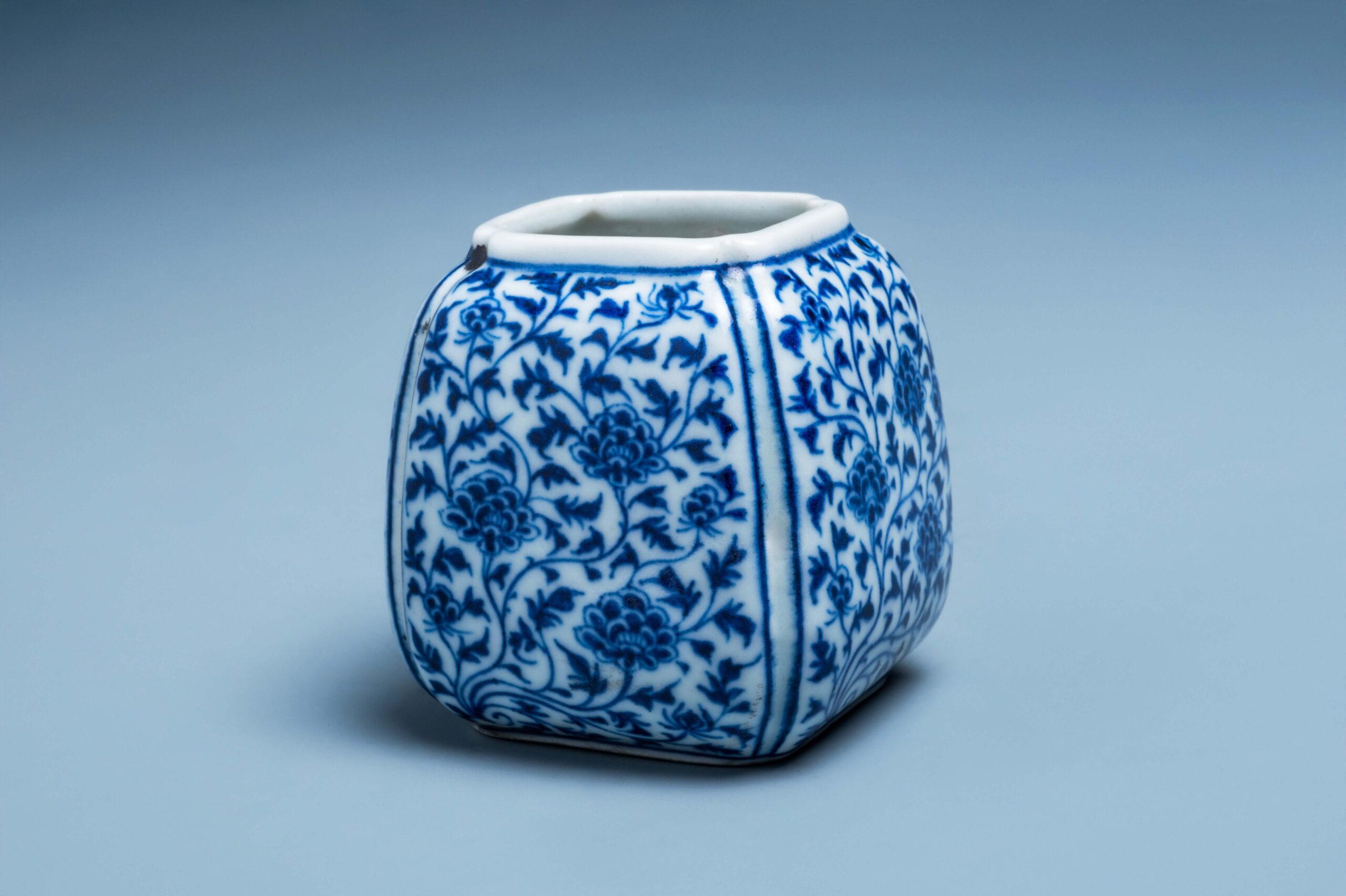 L1053 清乾隆 青花纏枝牡丹紋方罐瓷 H:5cm 附盒款識:大清乾隆年製。