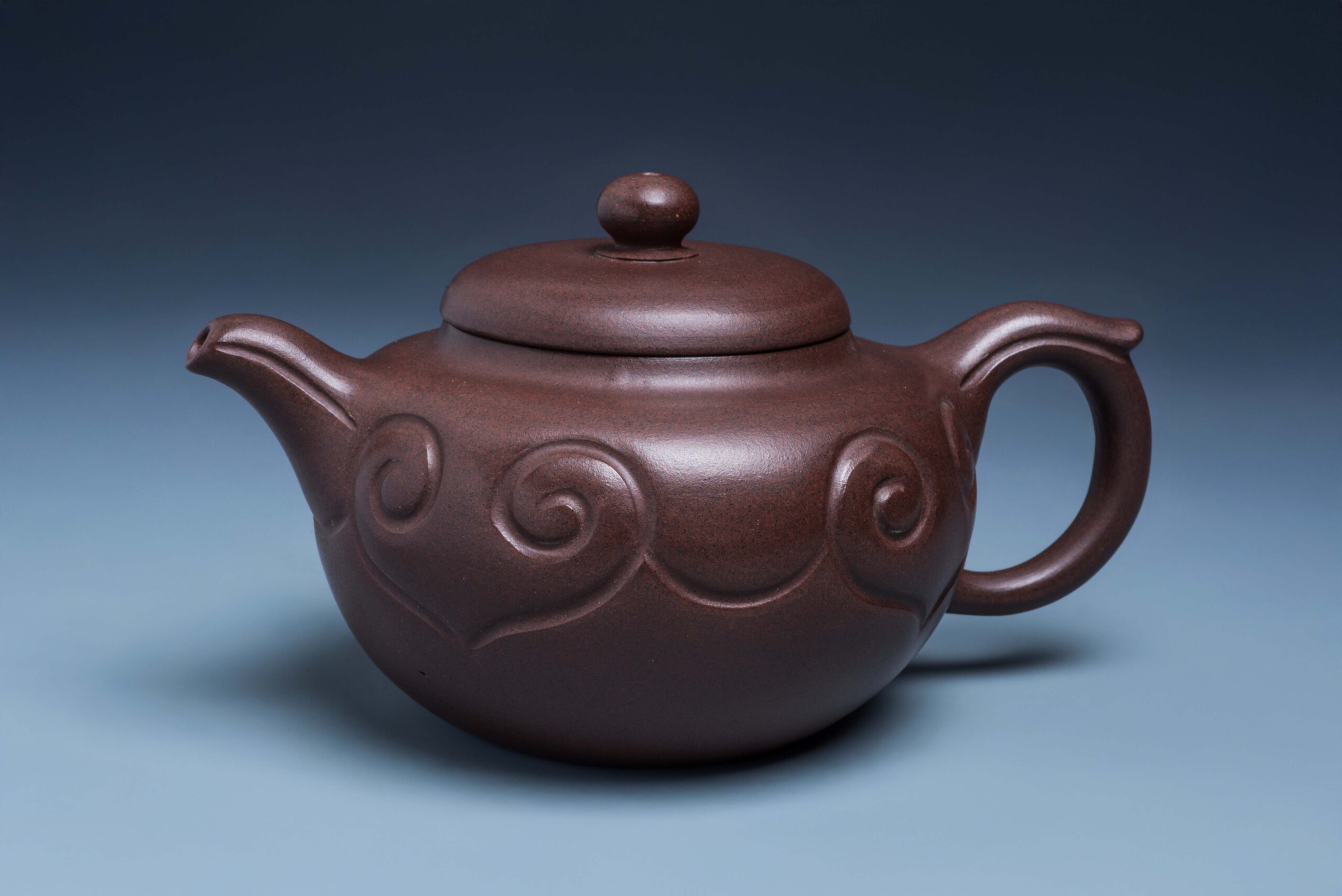 L1072 顧景舟(1915-1996);紫砂仿古如意壺紫砂 L:17.5cm 附盒款識:顧景舟(蓋款)、曼晞陶藝(底款)。