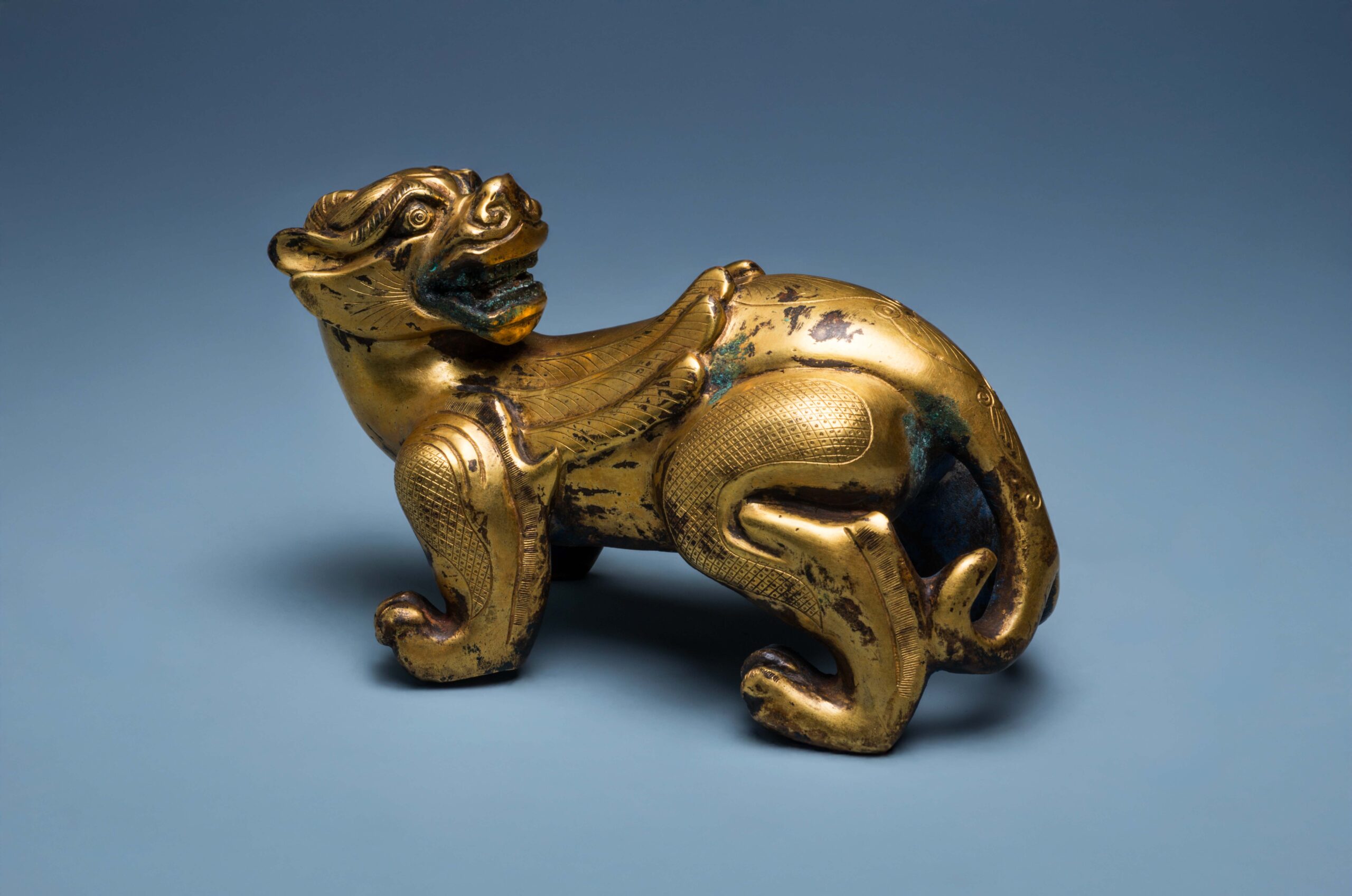 L1084 銅鎏金辟邪瑞獸擺件銅 L:16cm 附盒