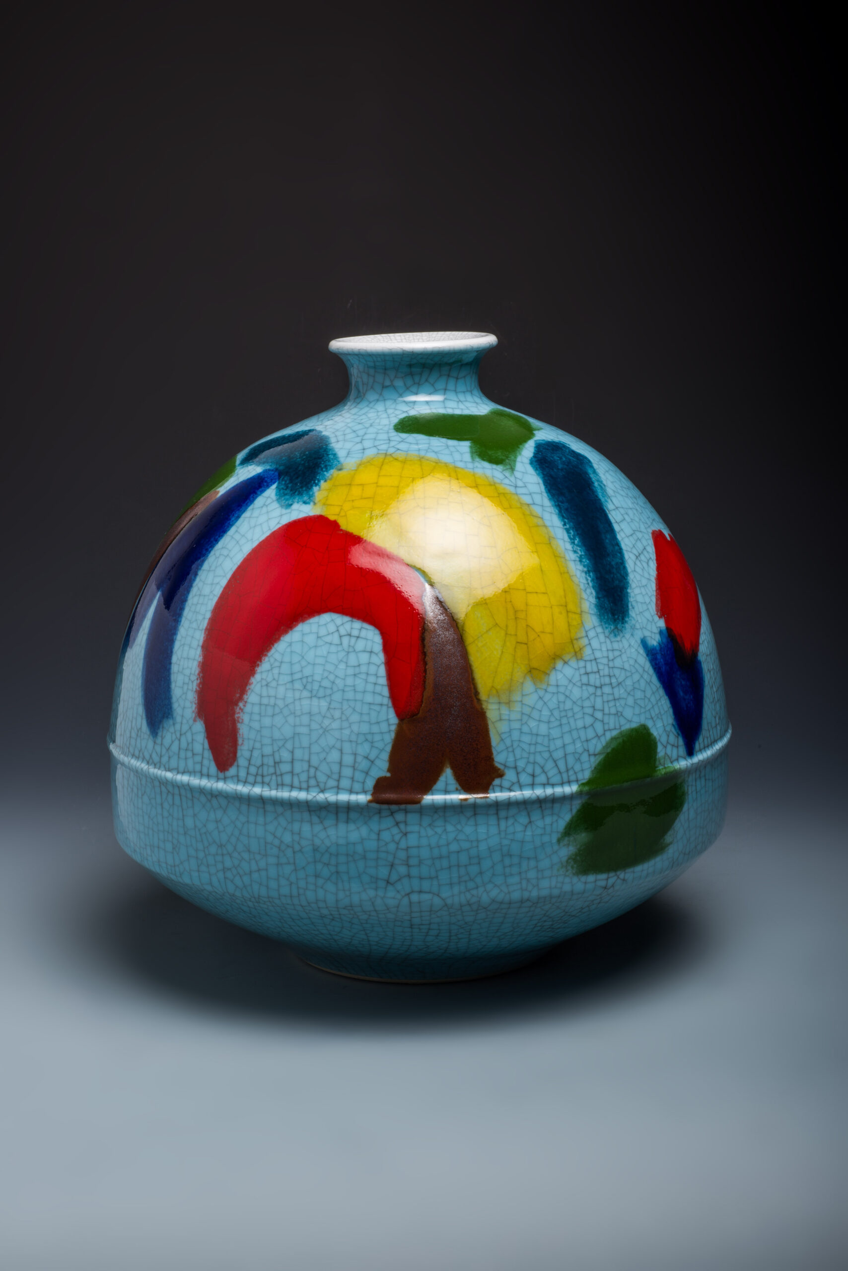 L2001 林葆家(1915-1991);彩繪人生瓷 1990年作 H:33cm 附盒款識:林葆家作。一九九○年(底款)。