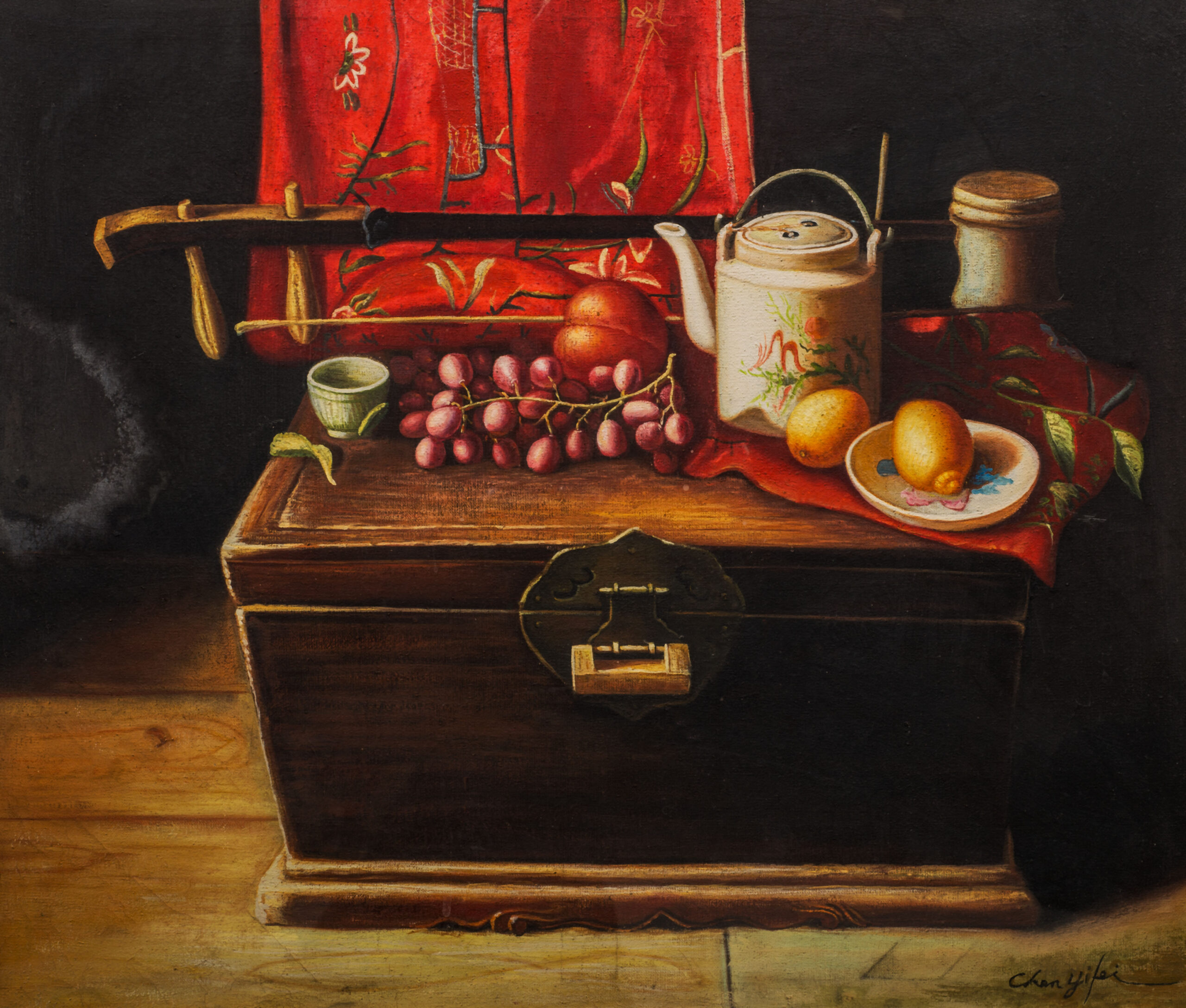 L2030 陳逸飛(1946-2005);靜物油彩畫布 50x59cm 框簽名於右下:Chen Yifei。