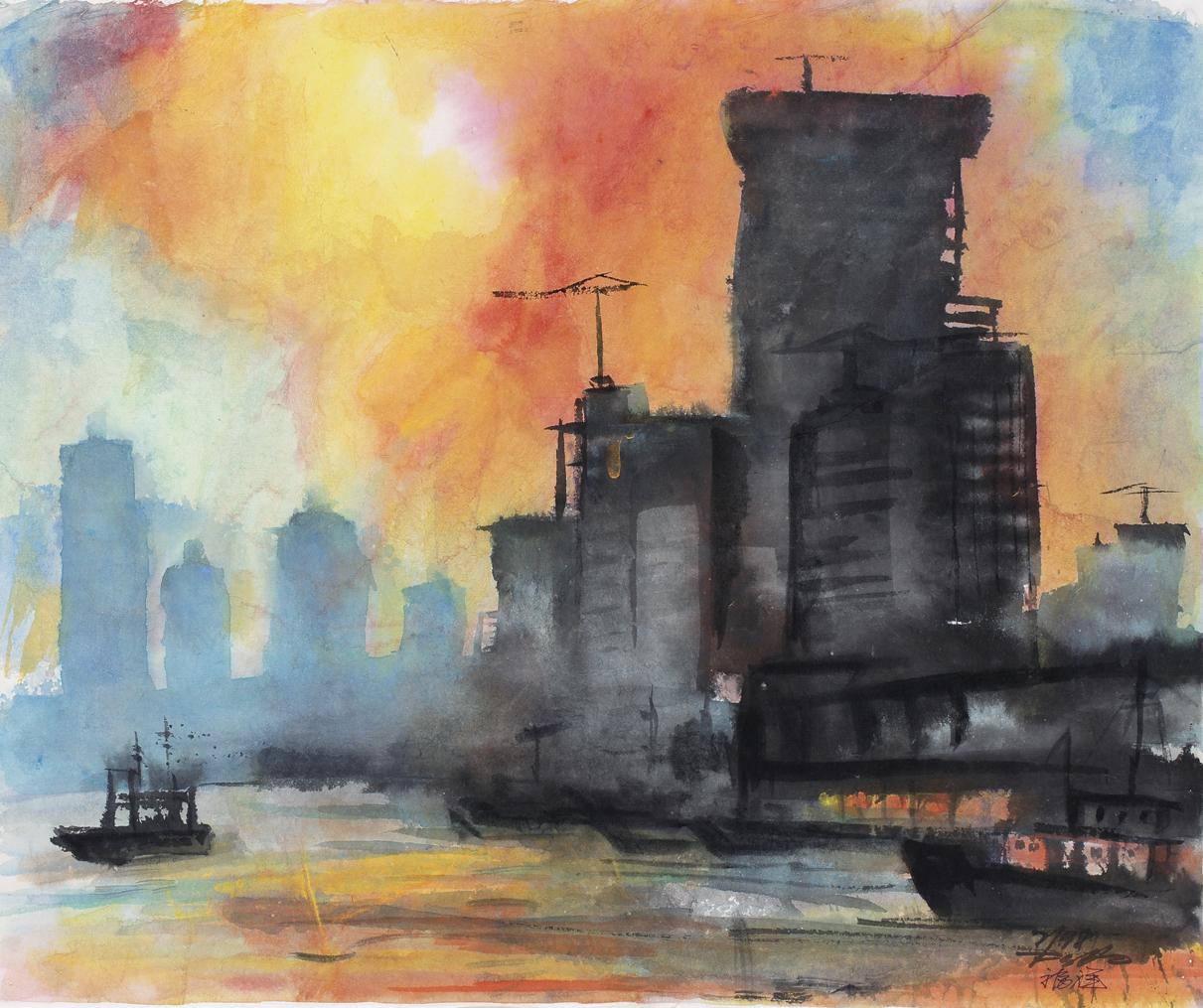 L2032 何福祥(B.1933);風景水彩紙本 1999年作 38.5×46.4cm 鏡片簽名於右下:福祥。資料:《長流藝聞 No.112》,長流美術館,1999年11月,p.13。