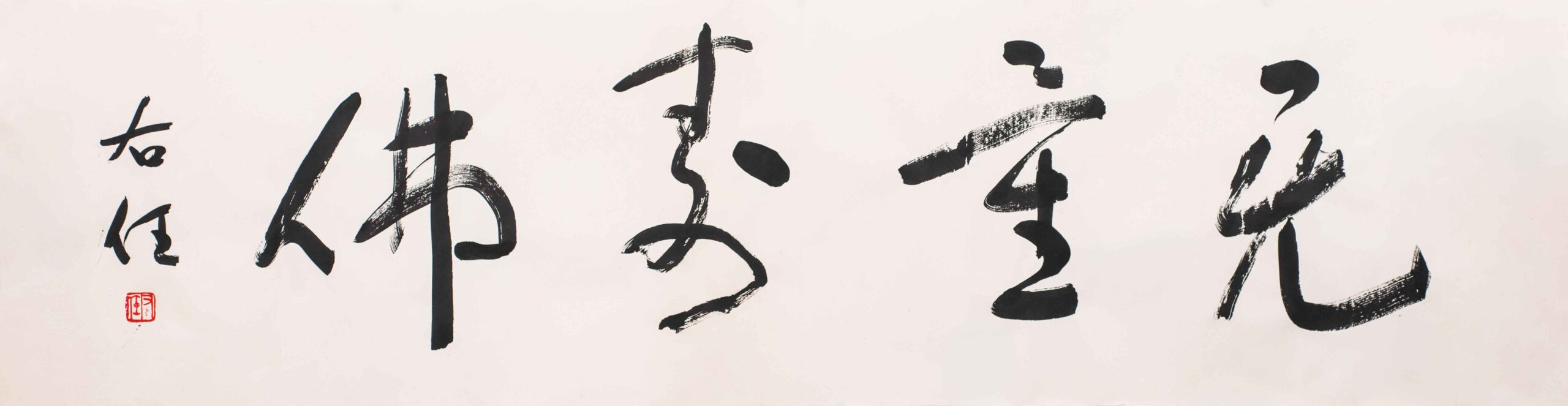 L5012 于右任(1879-1964);無量壽佛水墨紙本 36x132cm 畫心釋文:無量壽佛。款識:自題。右任。鈐印一。右任。