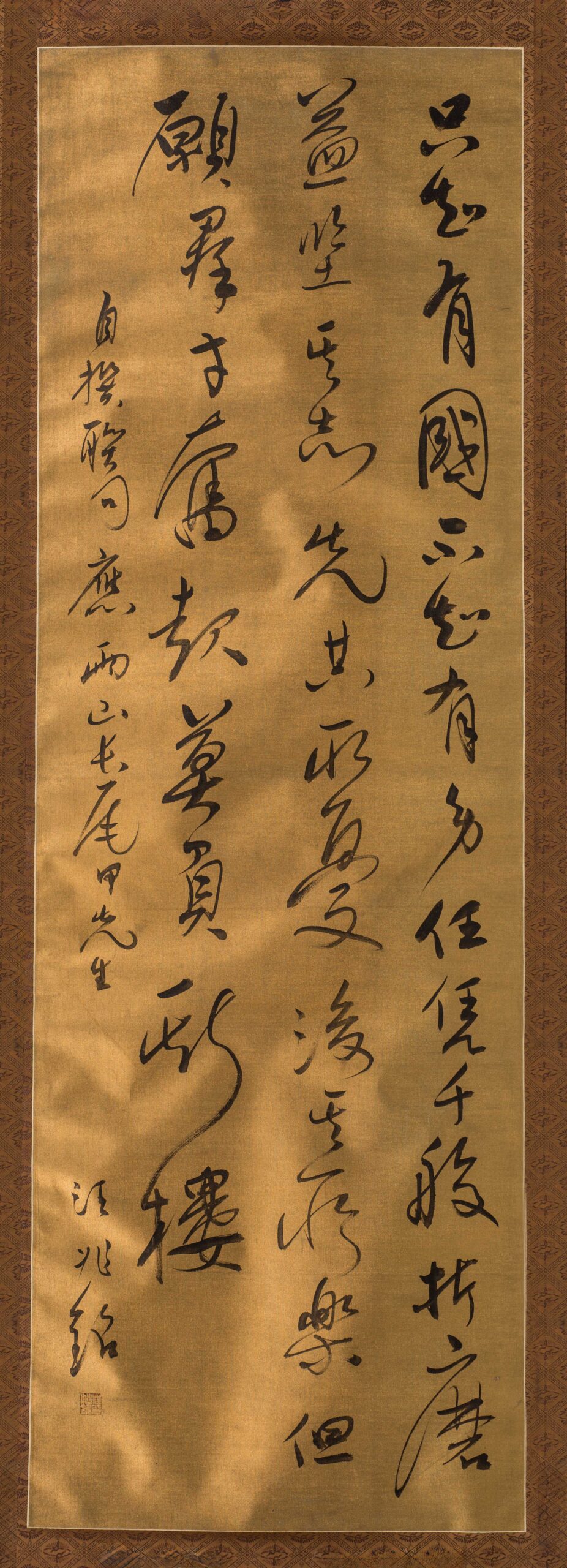 款識:自題。自撰聯句,應雨山長尾甲先生。汪兆銘。