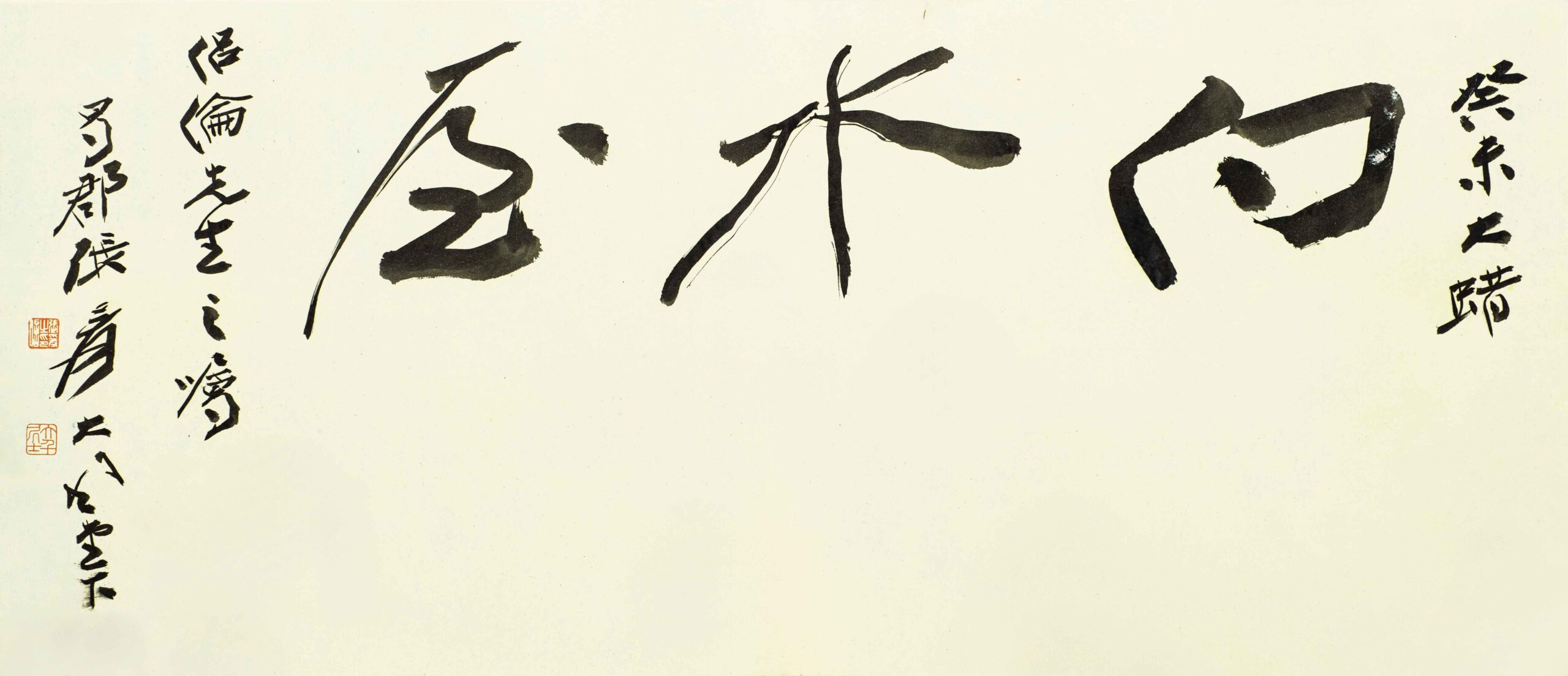 L5029 張大千(1899-1983);向水屋水墨紙本 1943年作 44x103cm 鏡片釋文:向水屋。款識:自題。癸未大臘。侶倫先生之囑。蜀郡張爰大風堂。鈐印二。張爰之印信。大千居士。