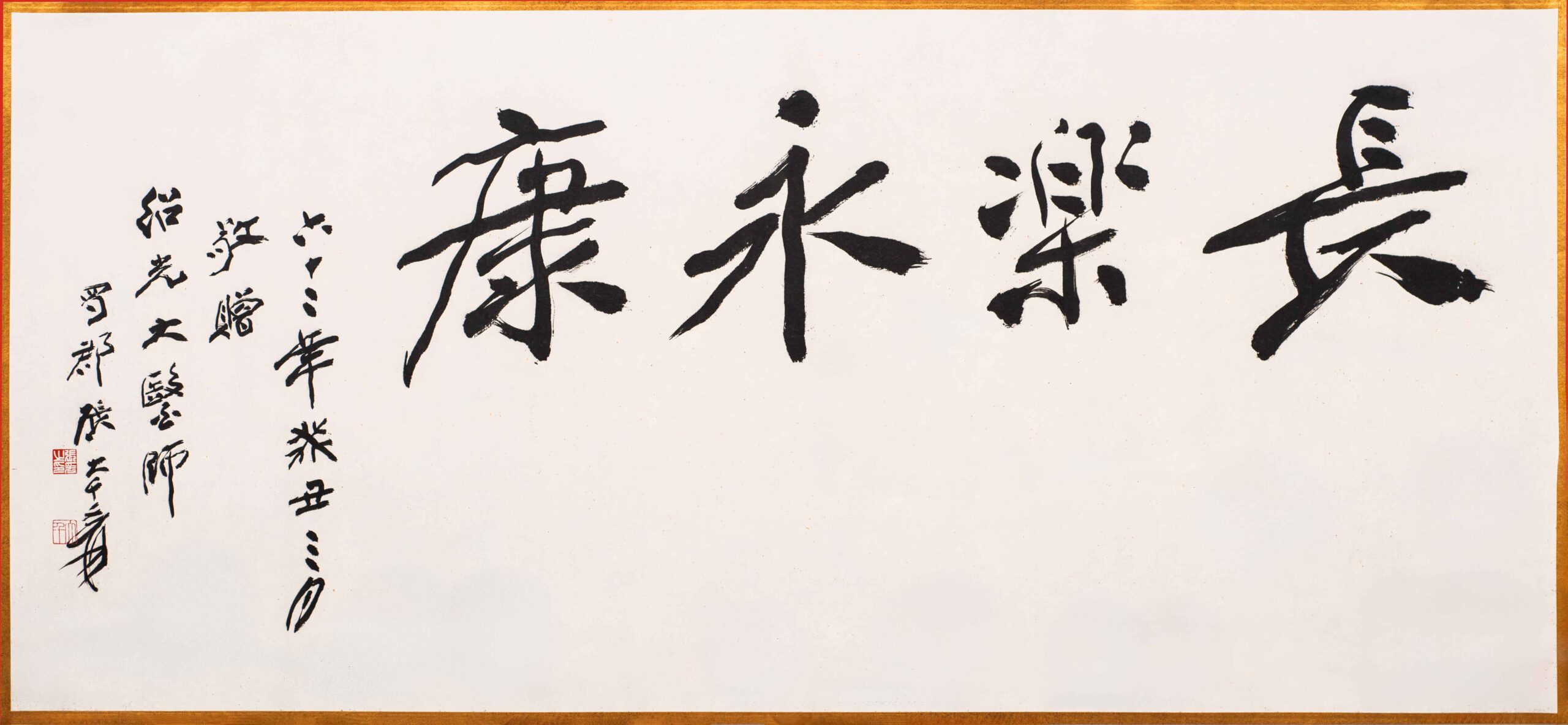 款識:自題。六十二年癸丑三月。敬贈紹光大醫師。蜀郡張大千爰。鈐印二。張爰之印。大千。