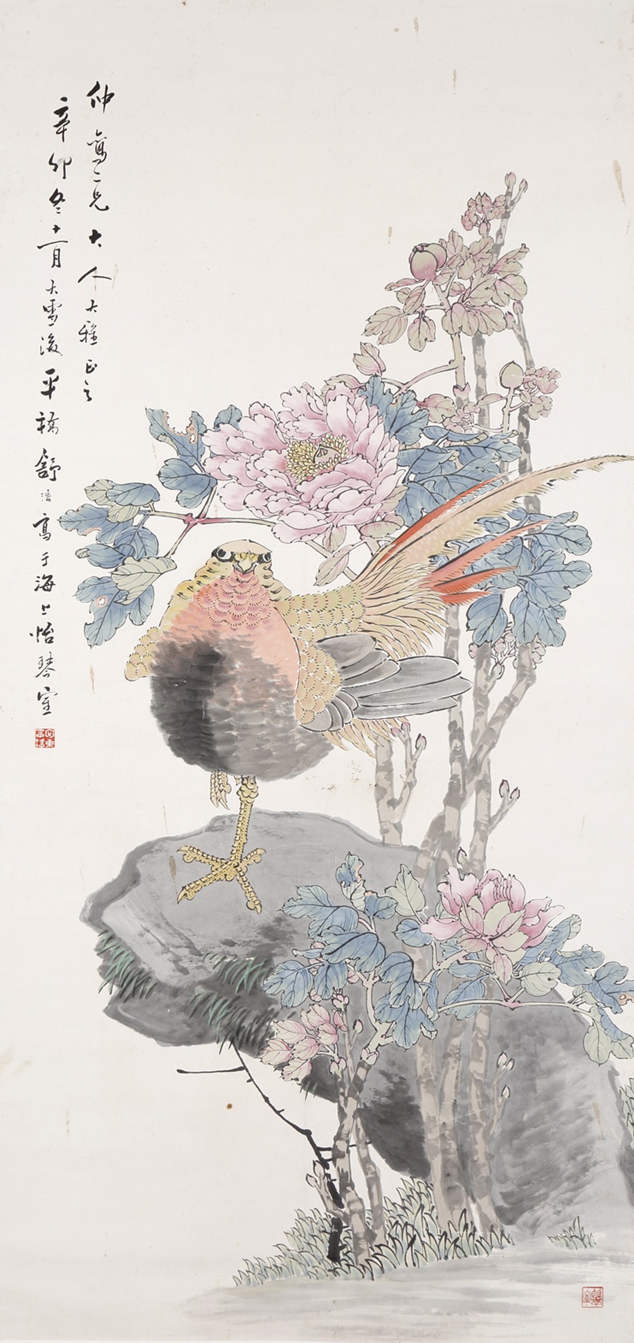 款識:自題。仲鶯二兄大人大雅正之。辛卯冬十一月。大雪後平橋舒浩寫於海上怡琴室。鈐印二。向東平橋。怡琴室主。