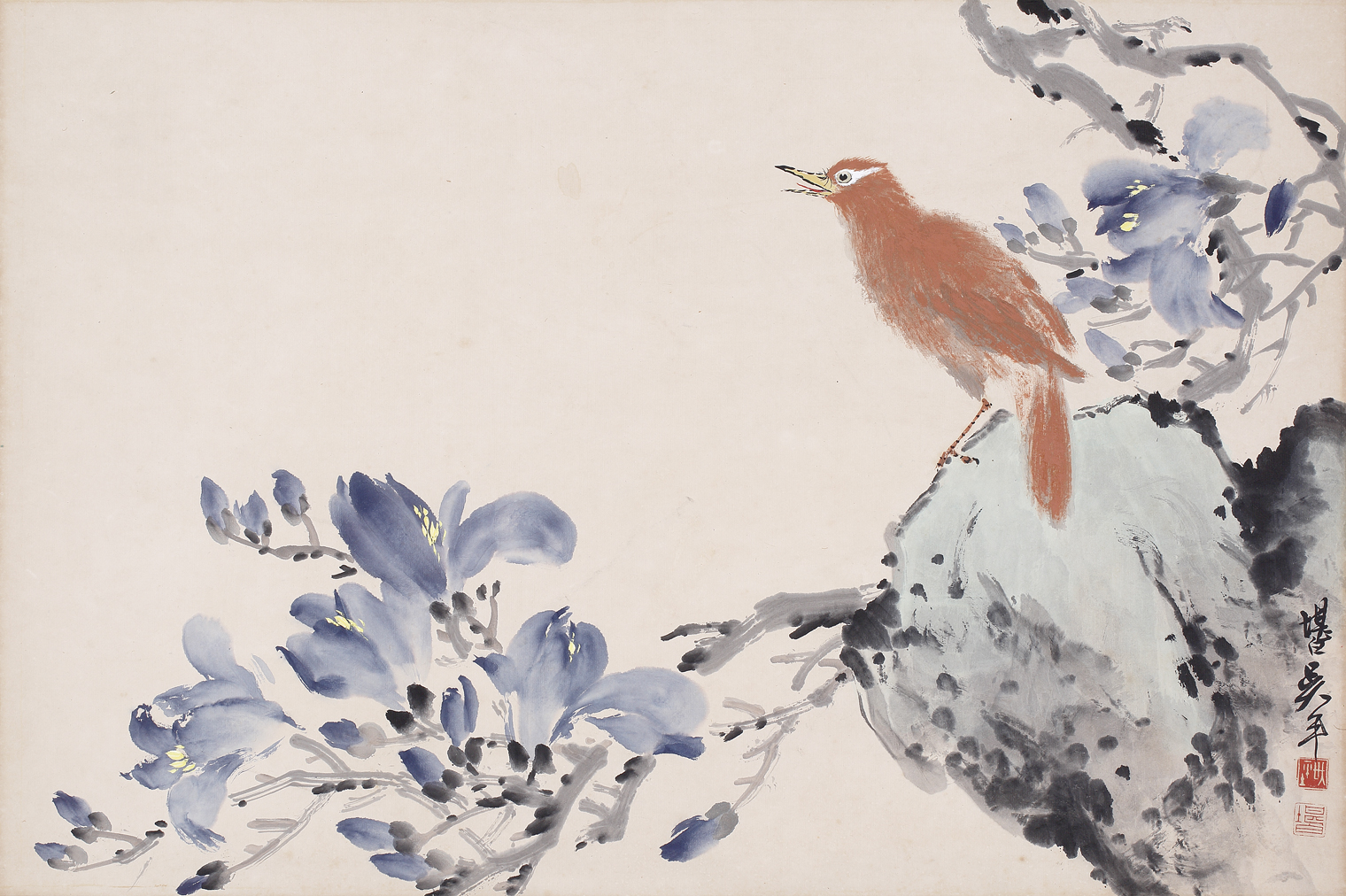 L6037 吳平(1920-2019);花鳥設色紙本 46x69cm 軸款識:自題。堪白。吳平。鈐印二。吳平。勘白。資料:《長流藝聞 No.055》,長流美術館,1995年2月,p.13。
