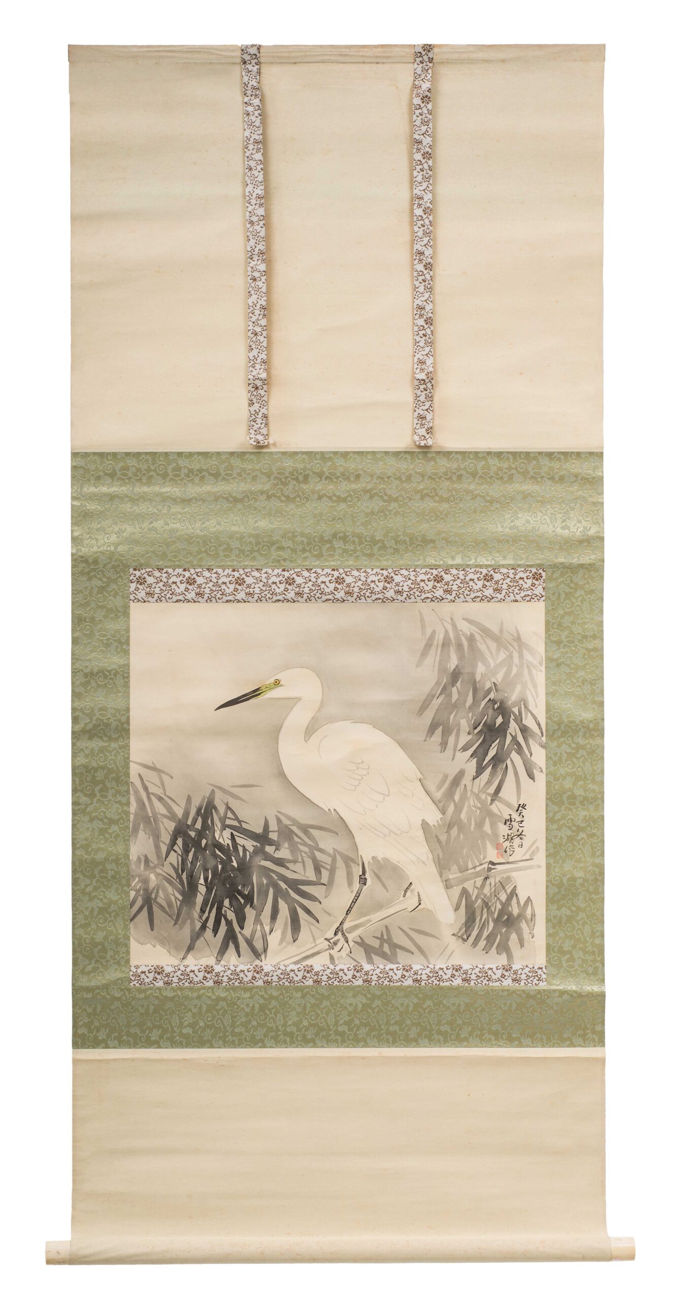 L6094 郭雪湖(1908-2012);白鷺絲竹設色絹本 1953年作 40.5x47cm 日本裱軸 款識:自題。癸巳冬月。雪湖作。鈐印二。雪。湖。